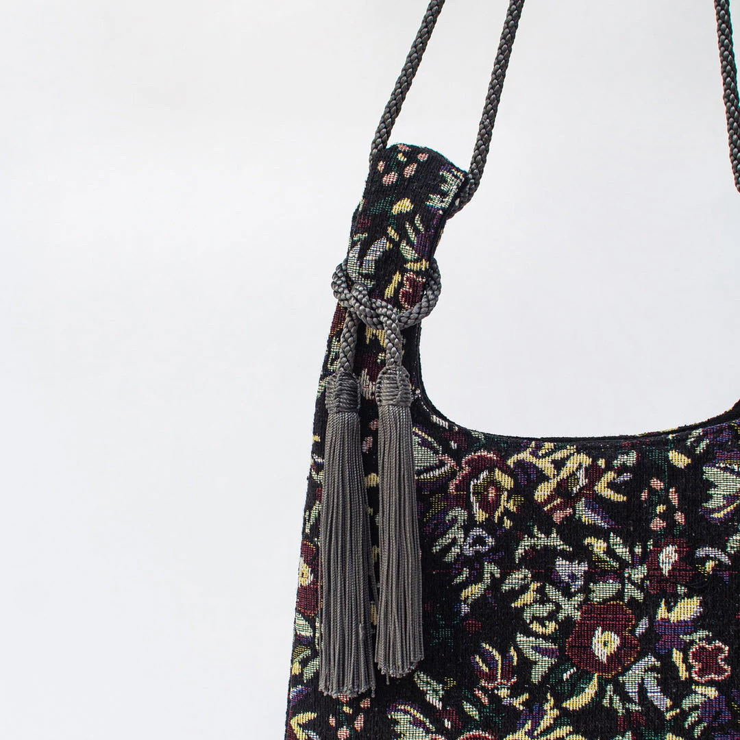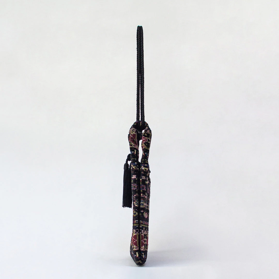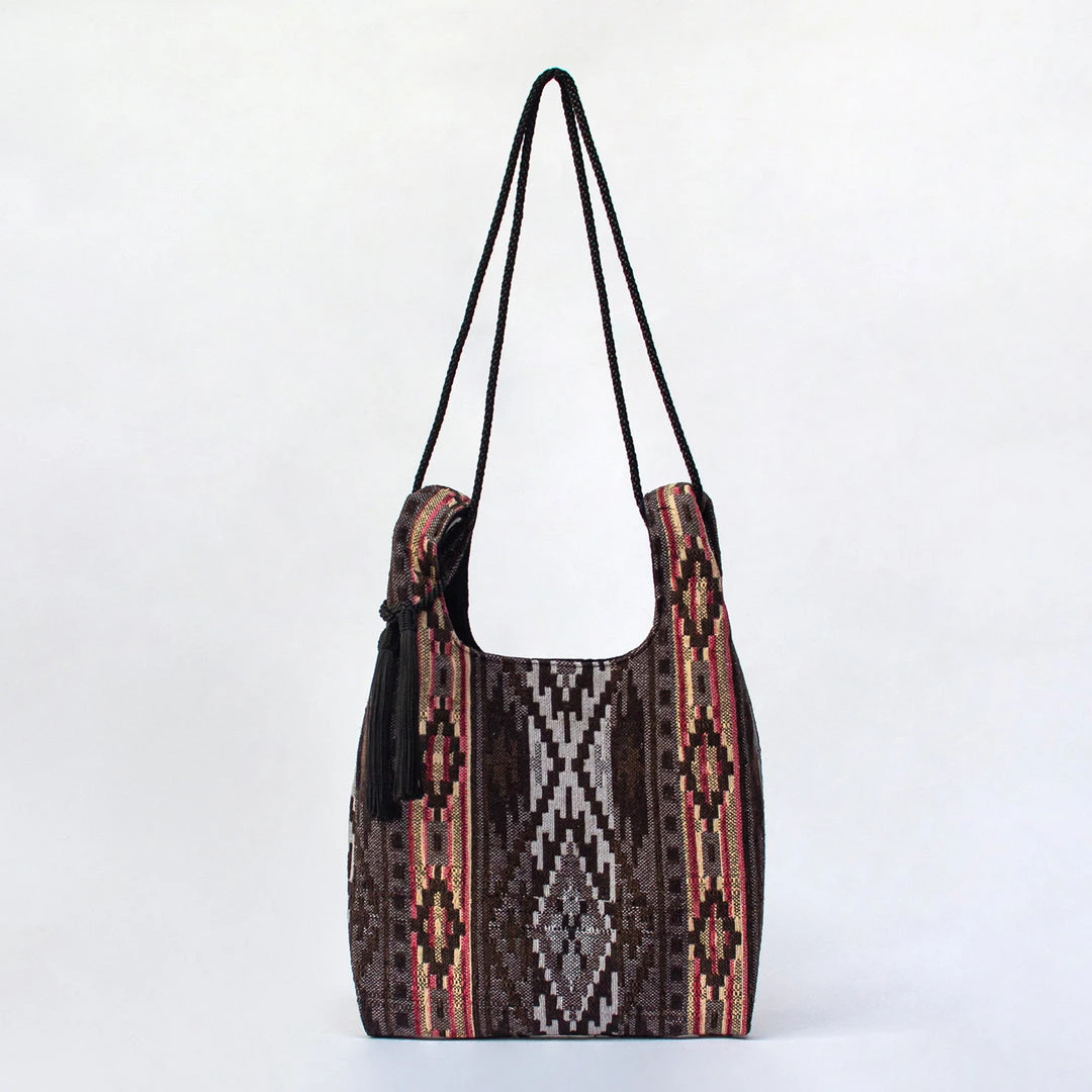 The Kolkata bag is our jacquard bag inspired by the colourful atmosphere of the eponymous Indian city. We have designed 4 creative patterns for this medium sized bag and you can collect them all: Tipi, Flore, Bohem and Navajo. This bag has a black lining and magnet button. The handle with the pompoms is made in the sabra way, traditionally used in Morocco. This bag is a marriage of the two countries that we love for their craftsmanship skills!
