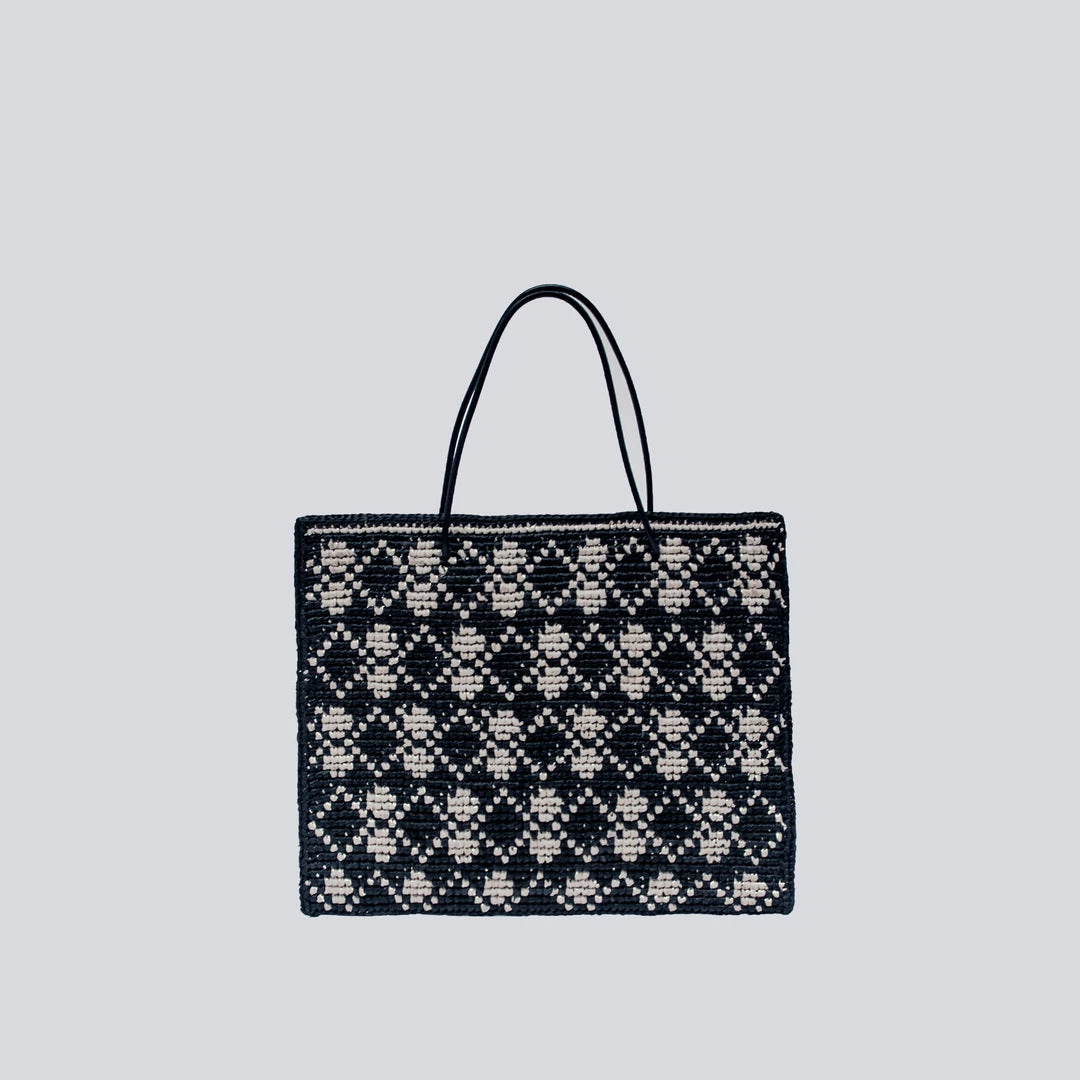 The Oui-Oui Tote Bag, with its playful circular motif, is a must-have for the Spring. Its thin leather cord handles compliment its modern design and curated shape.